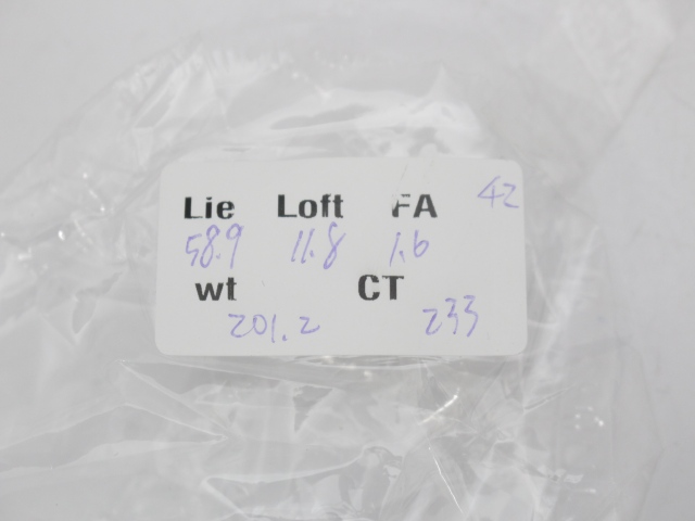 ソール、フェースにごく薄い擦り傷がある以外はきれいです。ツアー支給品(スペックシート、ツアー支給用アルミスリーブ(未使用)付き)。ロフト:11.8度、ライ角:58.9度、フェースアングル:1.6、ヘッド単体重量194.5g+スリーブ&ソケット重量7.5g、CT値233。ヘッドカバー、レンチなし。ソールウェイト3gx2,13g。注:今回からネックの+刻印が無くなりました。スペックシートだけがツアー支給品かどうかの判別材料となりますのでリセールを考えていらっしゃる方は必ず保管を願します。無いと市販品としての査定になります。
