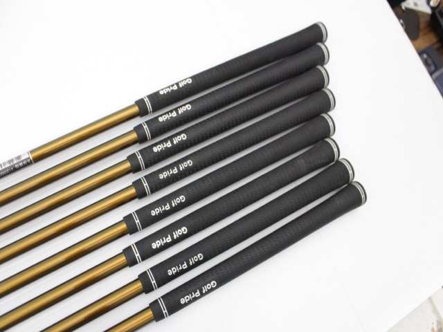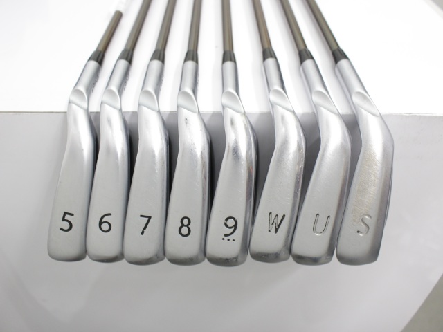 クラブの状態:ヘッドには擦り傷と当たり傷がありますが使用上の問題はありません。シャフトとグリップは多少の使用感があります。 ※ライ角:スタンダードブラック。グリップ:5番のみツアーベルベット360ライト スタンダードアクア、その他はツアーベルベットラバー バックラインありです。SWのソールは削れが目立ちます。