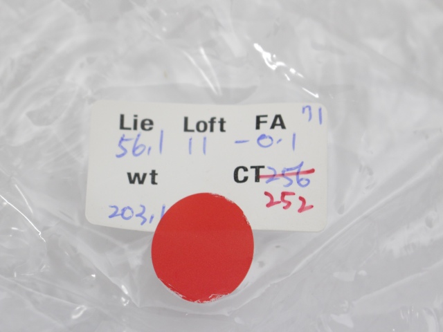 ツアー支給品(スペックシート、ツアー支給用アルミスリーブ付き)。ロフト:11度、ライ角:56.1度、フェースアングル:-0.1、ヘッド単体重量195g+スリーブ&ソケット重量7.5g、CT値はMAXの256です(赤文字は最小値になります。)。