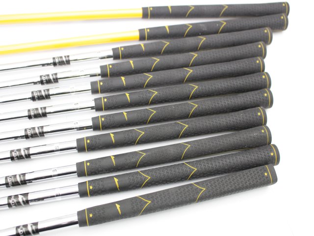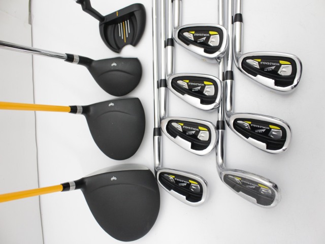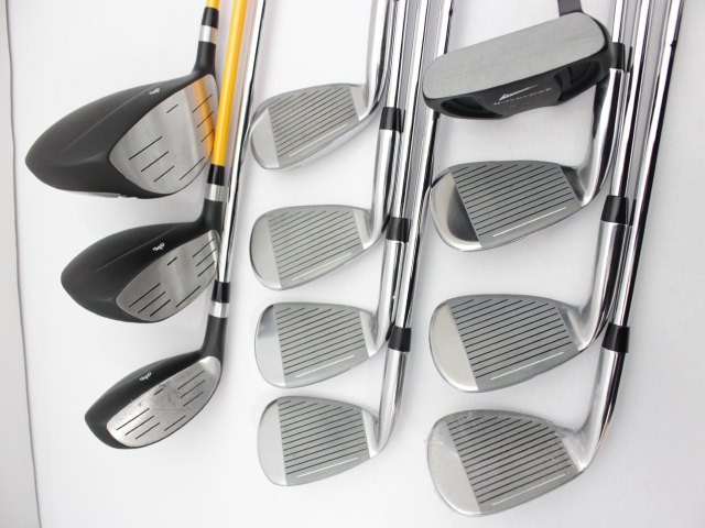 セット内容:1W、3W、UT、5-P.S、パター。ヘッドカバーはありません。シャフトは1Wと3Wがカーボン(硬さS)、その他はスチールシャフト(硬さS)です。状態は細かい擦り傷やアタリ傷はありますが、大きな傷はありません。UTは傷が多少多めです。SWはヘッドにビニールが付いたままです。シャフトとグリップも特に問題はありません。